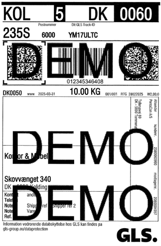 Eksempel på GLS pakkelabel via DSV Express: