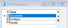 DSV Pakketyper I dette skærmbillede, der automatisk sørger for oprettelse af de pt. gældende pakketyper, kan der oprettes pakketyper efter behov. |