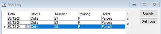 Er Log’en slået til, gemmes de genererede forsendelser i denne log.