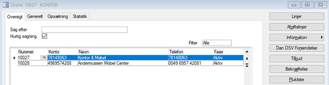 På Ordre-/Projektkartoteket er der oprettet en ny lokalmenu – Dan DSV Forsendelse.