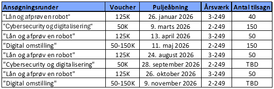 Herefter ser den fulde oversigt over puljer i 2026 således ud: